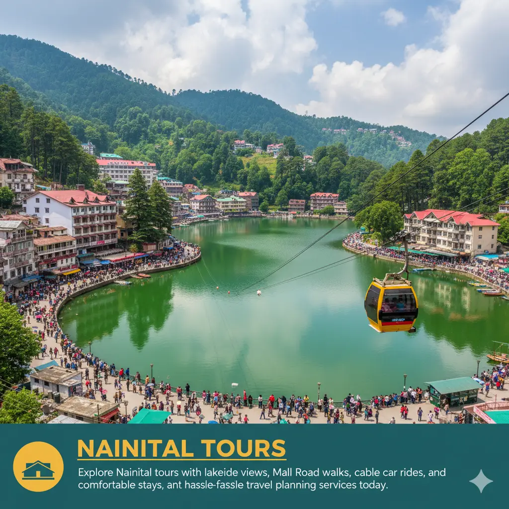 Our packages covers Nainital’s scenic viewpoints, charming Mall Road, peaceful lake walks, and the calm natural beauty of Bhimtal, Sattal & Naukuchiatal. Guests stay in a clean, comfortable hostel or hotel (as per choice), and travel in our own cab fleet, ensuring safe and smooth travel without third-party agents or hidden costs.